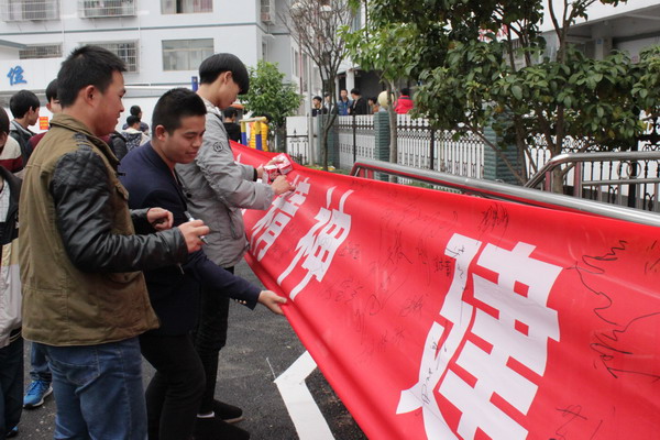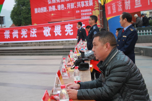 上午8时,巴东职高部分师生前往巫峡广场参加了由县普法办、司法局、法制办主办的“弘扬宪法精神,推动、创新、协调、绿色、开放、共享发展”为主题的宣传活动,现场签名并向广大市民赠送了法律知识手册;与此同时,学校各班进行了宪法知识讲座;下午,在庄严的国旗下,学校近千名师生在巨幅“弘扬宪法精神 建设法治巴东”的条幅上慎重地签下了自己的名字。